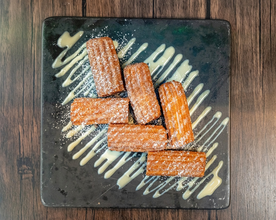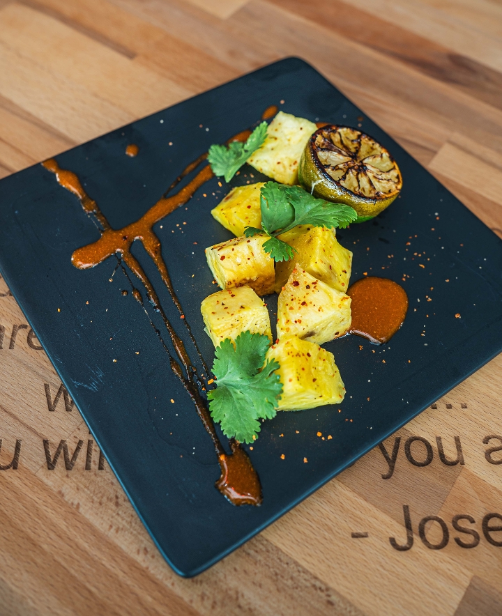 Slow roasted, sugared pineapple with Tajin and our signature hot sauce
