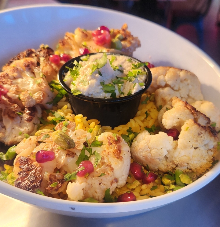 chickpea hummus, toasted pistachio, chimichurri, pomegranate seeds