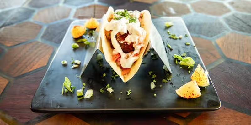 chickpea falafel, sriracha, lettuce, pico de gallo, pickled onions, tzatziki