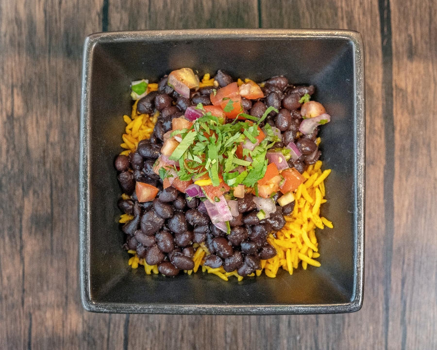 Herbed rice with spiced black beans